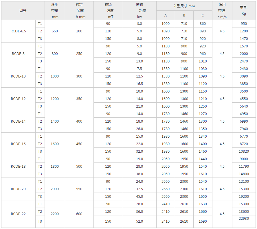 RCDE型油冷式電磁除鐵器,內(nèi)部采用先進(jìn)的內(nèi)外置式油循環(huán)散熱管設(shè)計(jì)和內(nèi)部勵(lì)磁線圈獨(dú)特繞制技術(shù),全密封結(jié)構(gòu),具有磁力大、防塵、防雨、耐腐蝕、連續(xù)工作使用壽命長(zhǎng)等特點(diǎn)。