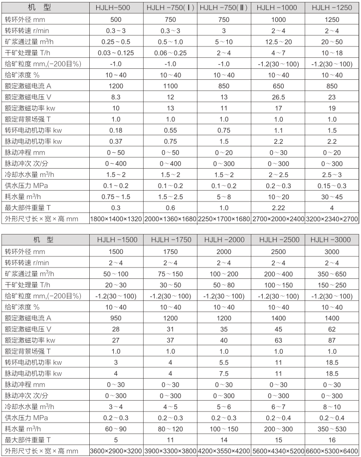 HJLH立環高梯度磁選機技術參數:
